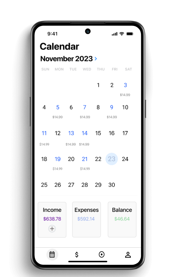 Users can also view the calendar page, which offers a detailed breakdown of daily spending under respective dates, providing insights into their spending patterns. Users can access a summary of total expenses, income, and balance. This feature helps them gauge whether they've stayed within their monthly spending budget. Also, users can conveniently add income and expenses directly from the calendar view, accessing templates for the previous and upcoming months.